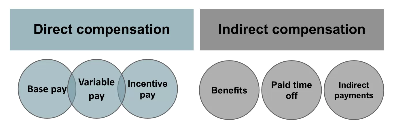 Variable pay is identified as a direct compensation element in the total compensation model.