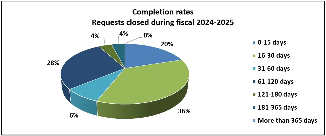 Completion rates requests closed during fiscal 2024-2025 - Text version